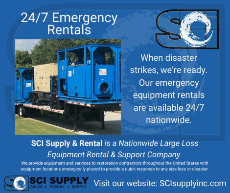 SCI Supply & Rental is a Nationwide Large Loss Equipment Rental & Support Company providing equipment and services to restoration contractors throughout the United States with equipment locations strategically placed to provide a quick response to any size loss or disaster.